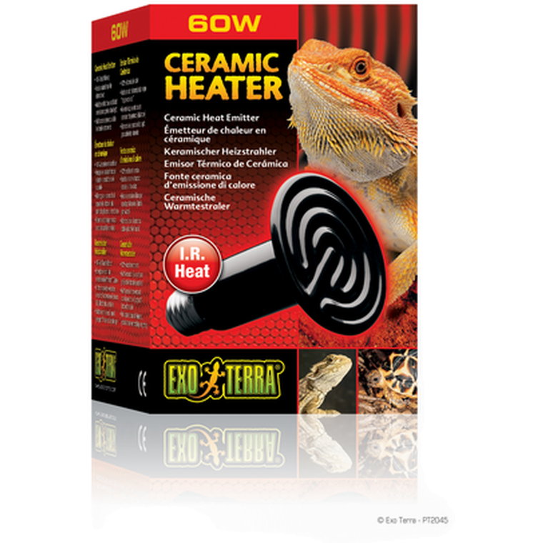Infrarød keramisk varmelampe som er utmerket til oppvarming av større terrarier. Exo Terra keramisk varmelampe for reptiler og fugler gir en infrarød varmestråling som ligner solens. Exo Terra keramisk varmelampe skal kun brukes sammen med den tilhørende Exo Wire Light. Exo Terra keramisk varmelampe - Heat Wave-lampe