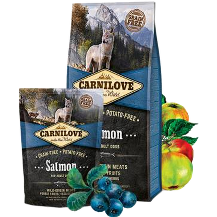 Laksemel (25 %), hydrolysert laks (20 %), gule erter (20 %), sildemel (10 %), kyllingfett (med tokoferoler som konserveringsmiddel, 9 %), kyllinglever (3 %), epler (3 %), tapiokastivelse (3 %), lakseolje (3 %), gulrøtter (1 %), linfrø (1 %), kikerter (1 %), hydrolyserte skall fra krepsdyr (en kilde til glukosamin, 0,026 %), bruskekstrakt (en kilde til kondroitin, 0,016 %), ølgjær (en kilde til mannanoligosakkarider, 0,015 %), sikorirot (en kilde til fruktooligosakkarider, 0,01 %), yucca schidigera (0,01 %), alger (0,01 %), psylliumfrø (0,01 %), timian (0,01 %), rosmarin (0,01 %), oregano (0,01 %), tranebær (0,0008 %), blåbær (0,0008 %), bringebær (0,0008 %).