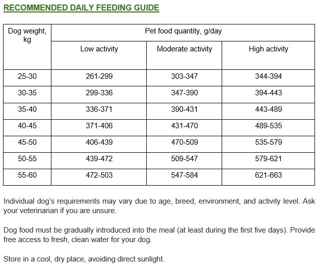 Dehydrert kyllingprotein, ikke mindre enn 32%, mais, ris, kyllingfett, utbenet kyllingkjøtt 5%, hydrolisert dyreprotein 5%, lakseolje, mineraler, sukkerroemasse, linfrø 1,25%, bryggergjær, tranebær 0,2%, agurkurtolje 0,1%, beta-1,3/1,6-glukaner 0,05%, Actigen® (kilde til betaglukaner) 0,04%, ringblomst (kilde til lutein) 0,04%, storborre, altearot, kamilleblomster 0,03%, brennesle 0,03%, yucca ekstrakt, timian 0,015%.
