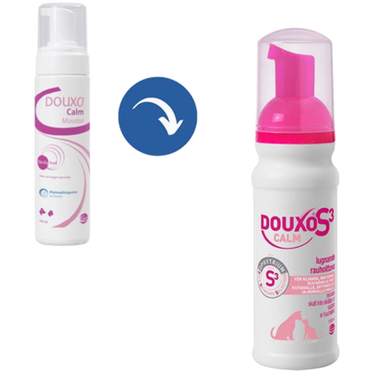 Douxo Mousse kan brukes på sensitiv hud. For katter, hunder, marsvin, kaniner og hester. Moussen påføres på tørr pels og skal ikke skylles ut. Douxo Calm Mousse beroliger, gjenoppretter sensitiv hud og forebygger flassdannelse. Kan kombineres med Douxo Calm Shampoo.