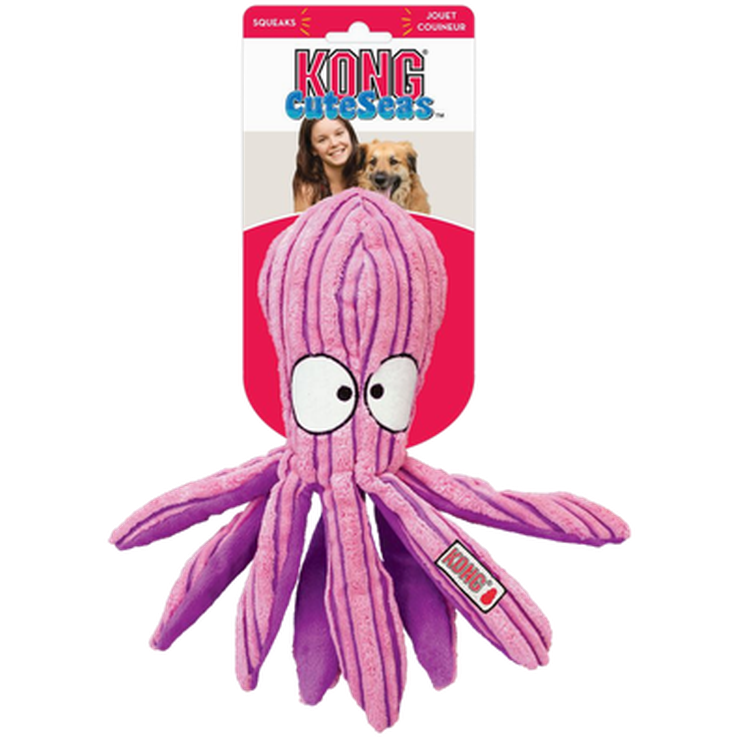 Octopus - Søt blekksprut fra Kong i myk kordfløyel. Kong CuteSeas Octopus lager et spennende knirke- og raslelyder! Hundelekene fra Kong CuteSeas er laget av myk og koselig kordfløyel og er perfekte for hundens kosestunder. Det har aldri vært så søtt å kose med sjødyr som med Kongs kosedyr. Kong CuteSeas Blekksprut Manchester Hundeleketøy