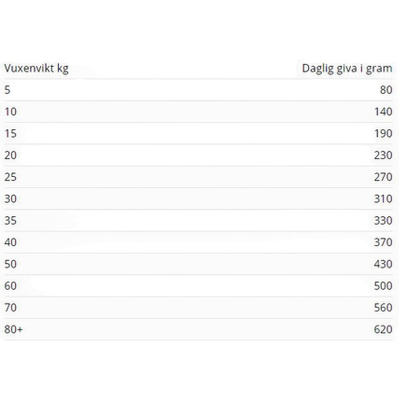 Vi anbefaler å forsegle posen ordentlig og oppbevare hundematen på et kjølig og tørt sted for å holde maten fersk.