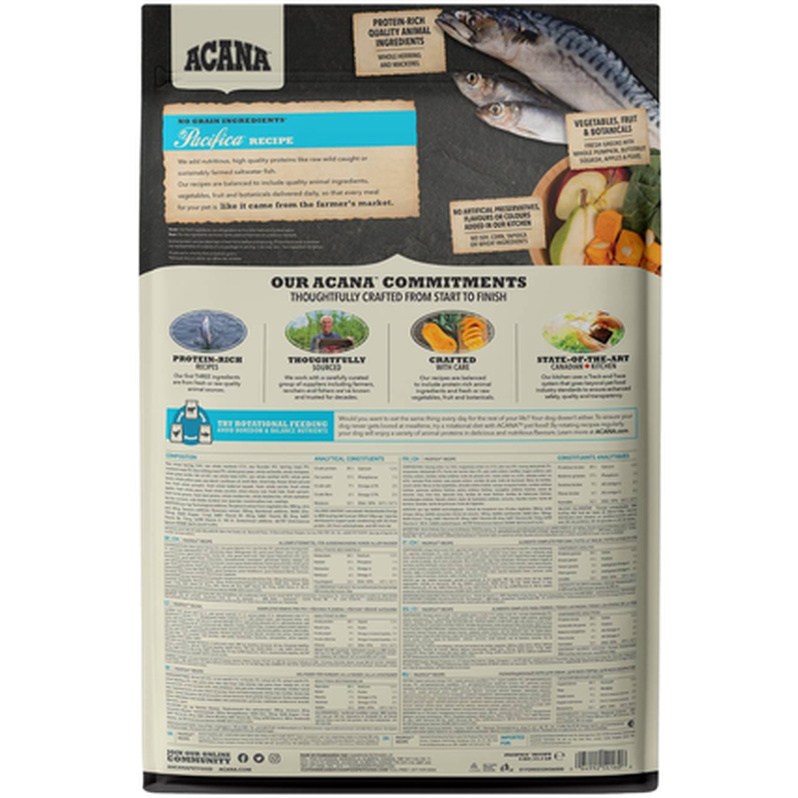 Rå hel sild (14 %), rå hel makrell (11 %), rå flyndre (9 %), tørket sild (7 %), tørket makrell (7 %), tørket kolmule (7 %), hele grønne erter, hele røde linser, hele kikerter,hele grønne linser, fiskeolje (6 %), rå hel kummel (4,5 %), rå hel steinbit (4,5 %), hele pintobønner, hele gule erter, ertestivelse, solsikkeolje, linsefiber, tørket tare, frysetørket torsk og lever, ferske hele gresskar, ferske hele butternutsquash, ferske hele gulrøtter, ferske hele epler, ferske hele pærer, ferske hele zucchini, tørket sikoriarot, fersk grønnkål, fersk spinat, ferske kålrotblader, ferske rødbeteblader, hele tranebær, hele blåbær, hele saskatoonbær, gurkemeie, marietistel, kardborrerot, lavendel, malve, nyperoser.