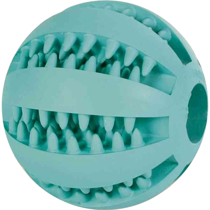 Tyggeleketøy i naturgummi med mintsmak. Aktiveringsleke der du legger godbiter mellom gummitennene og lar hunden prøve å lirke dem ut. Rullende aktivitetsball som masserer tannkjøttet og lukter friskt. Trixie Denta Fun Mintfresh Baseball i naturgummi.