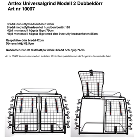 Allsidig port med to dører. For biler med skrå bakluke. Etterlat aldri hunden din i en varm bil, det blir fort en dødsfelle! Artfex passliste for bilmodeller