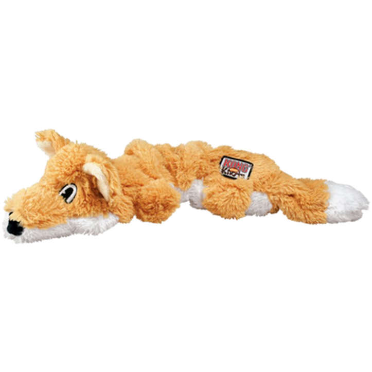 Fox - KONG Scrunch Knots er realistiske kjæledyrleker som får hundene til å komme tilbake etter mer. Plysjmaterialet slynger seg rundt det indre tauet, mens de elastiske sidene skaper naturlige bevegelser som lokker til lek. De indre knutene tilfredsstiller hundens naturlige instinkter, og disse lekene inneholder ikke noe fyll, noe som betyr mindre søl. Pip for ekstra glede! Kong Scrunch Knots Fox hundeleketøy