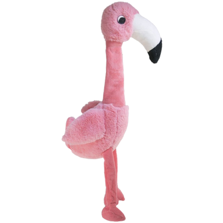 Flamingo - Lang plysjleke som er ideell for tautrekking og risting. Hundeleketøyet har innvendig teksturert hals for naturlige tyggeinstinkter. Fløyte med lav tone og forsterket plysjdesign holder hunden underholdt i lang tid. Perfekt til apporteringsleker med hunden.Kong Shakers Honkers Flamingo Flerfarget flamingo
