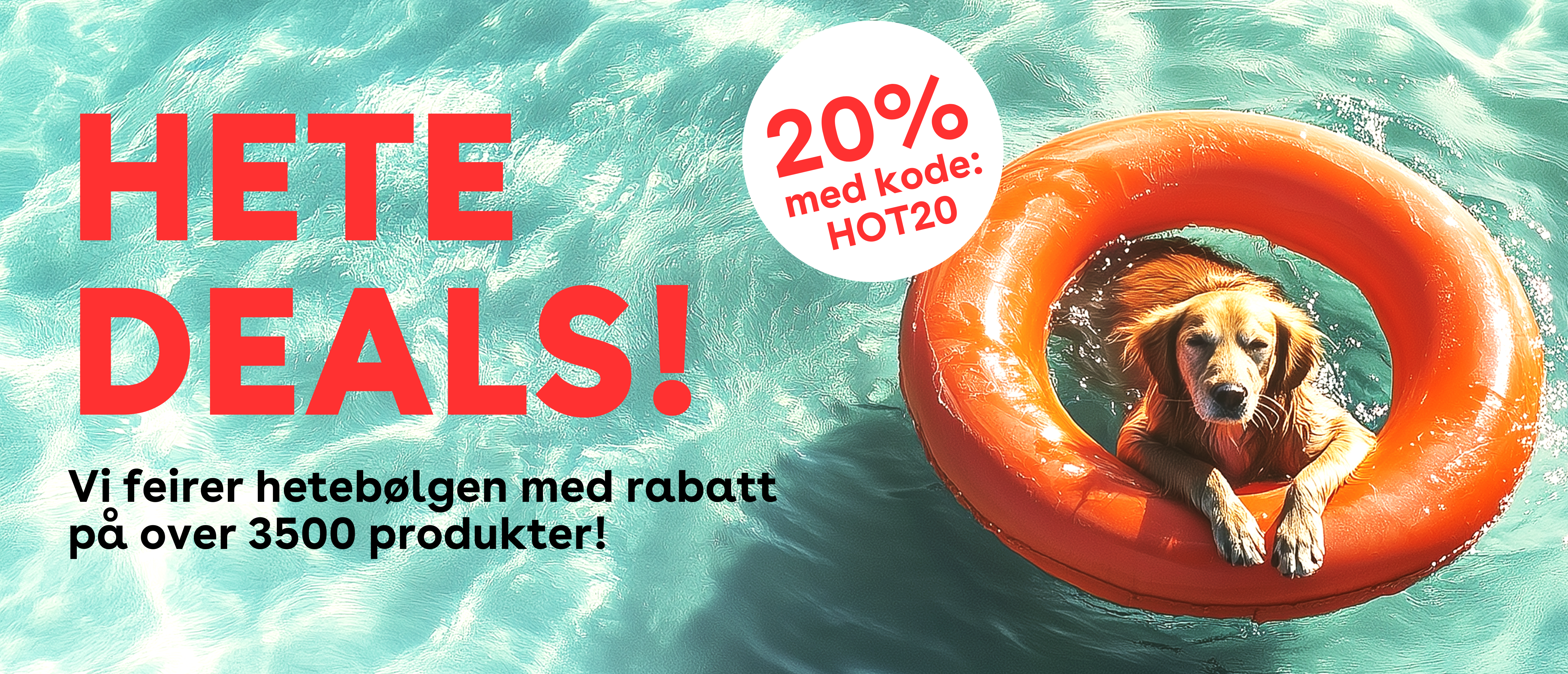 Sommeren nekter å gi opp, og vi feirer hetebølgen med våre HETE HELG TILBUD! Benytt anledningen til å kjøle deg ned med kule funn til kjæledyret ditt - få 20% rabatt når du bruker koden: HOT20. Tilbudet gjelder kun på nett til og med mandag 9/9.
