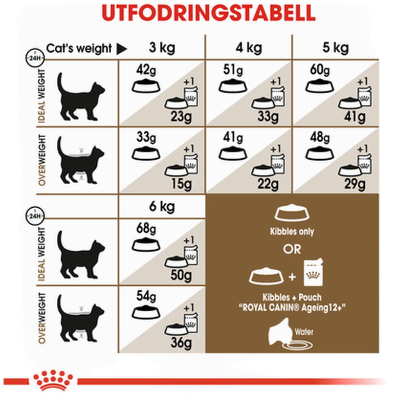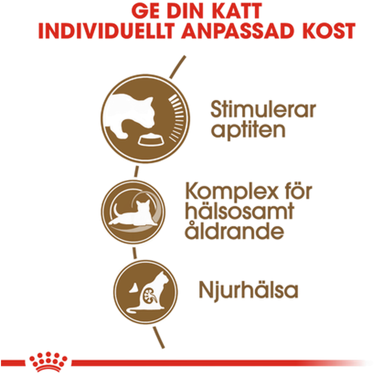 Vegetabilsk proteinisolat*, ferdigkokt hvetemel, animalsk fett, ris, tørket fugleprotein, cellulosefiber, hydrolysert animalsk protein, mais, sikorimasse, soyaolje, fiskeolje, mineraler, tomat (inneholder lykopen), loppefrø/skall, frukto-oligosakkarider (FOS), ekstrakt fra grønn tre (inneholder polyfenoler), gjærhydrolysat (inneholder mannan-oligosakkarider (MOS)), skalldyrhydrolysat (inneholder glukosamin), borageolje, tagetesekstrakt (inneholder lutein), bruskhydrolysat (inneholder kondroitin).