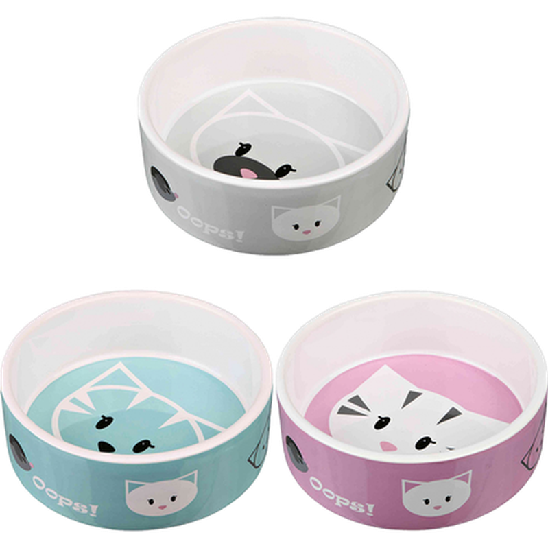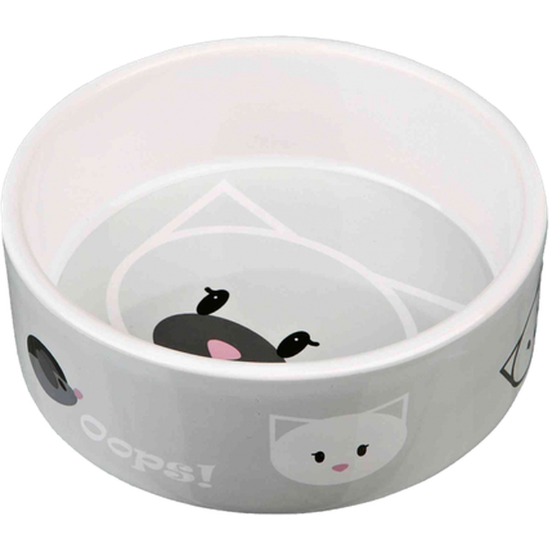 Katteskåler med søtt kattemønster i solid keramikk som står støtt. Piff opp kattens måltider med matskåler som tåler oppvaskmaskin. Keramikkskålene er 12 cm i diameter, rommer 0,3 liter og fås i ulike farger. Trixie Mimi keramikkskål.