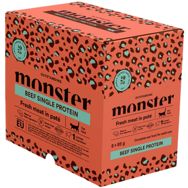 Monster Cat Pouches er et våtfôr fra Monster, utviklet i Sverige. Oppskriftene er nøye utviklet for å ha et høyt smaksnivå - perfekt selv for kresne katter. Monster Beef inneholder deilig storfekjøtt, hjerte, kjøtt, lever, lunge og mage som sammen med buljong gir en fantastisk smak. Med Monster Pouches kan du gi din pelskledde venn det beste av to verdener med våtfôr hver dag - eller gjøre det enda bedre i helgen. For deg som ønsker det beste for katten din. Monster Cat Pouches Adult Beef