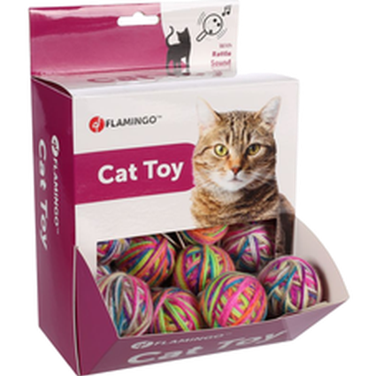 Morsom, fargerik ball laget av garn. Ballen fremmer sunn mosjon og oppmuntrer katten til naturlig jaktlek. Perfekt for både voksne, lekne katter og kattunger. Flamingo katteleketøy Cadee Ball
