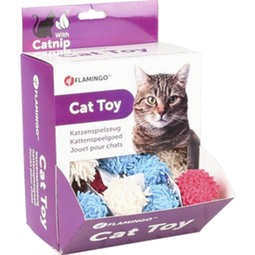 Myk katteball i mikrofiber. Gi katten daglig mosjon og oppmuntre til naturlig jaktlek. Ballen er perfekt for jakt, biting og tassing. Flamingo katteleketøy Dax Ball
