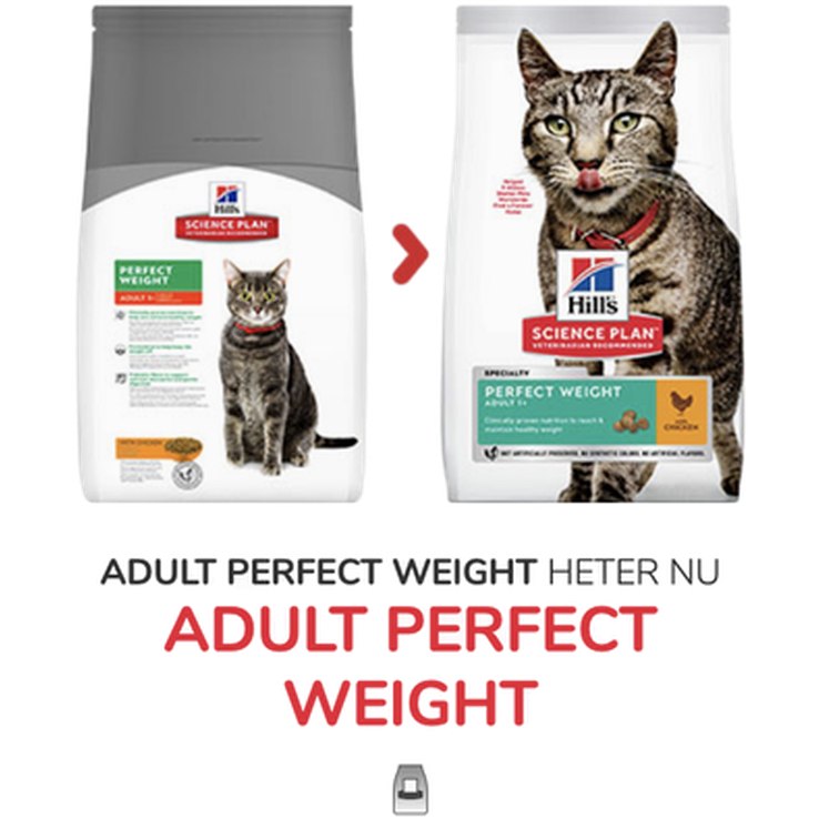 Hills tørrfôr med kylling for voksne katter med vektproblemer. Kattemat som er klinisk bevist næring for å hjelpe katter med å oppnå sunn vekt. Hills Cat Adult Perfect Weight Chicken kattefôr er et unikt tørrfôr med lavt fettinnhold, for at katten skal oppnå sunn vekt.