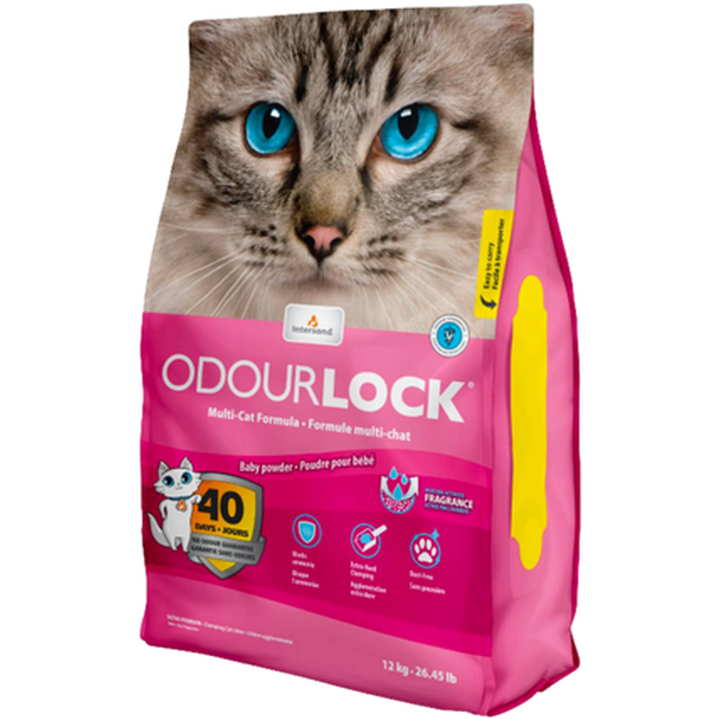 Babypudderduftende luktfri kattesand – Luktfri kattekasse i 40 dager! Odourlock kattesand er en ny og veldig effektiv klumpdannende kattesand. Intersand er fin sand, utviklet med ny teknologi og med ekstrem oppsugings- og klumpdannende evne. 99,9 % støvfri, myk og behagelig for kattens poter. OdourLock Cat Litter - Ultimate 40 day Odour Control - Intersand.
