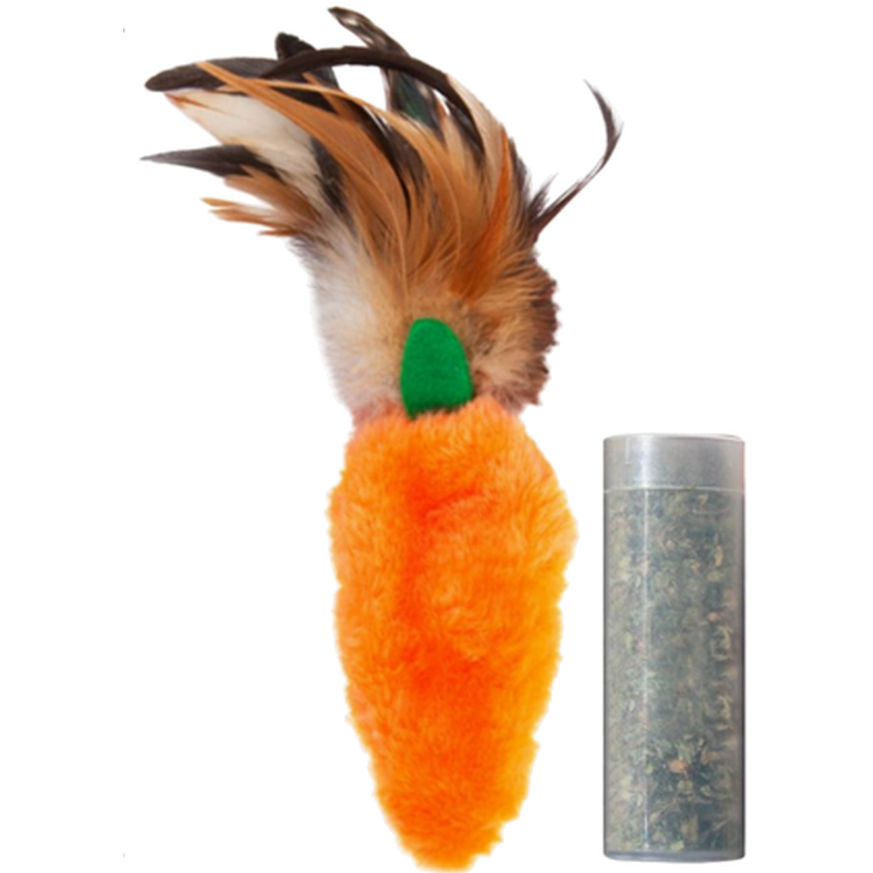 / Refillable Catnip Feather Top Carrot Toy Orange 13 cm