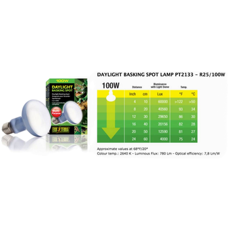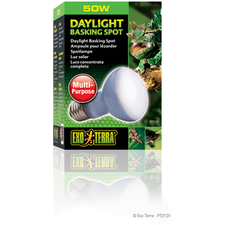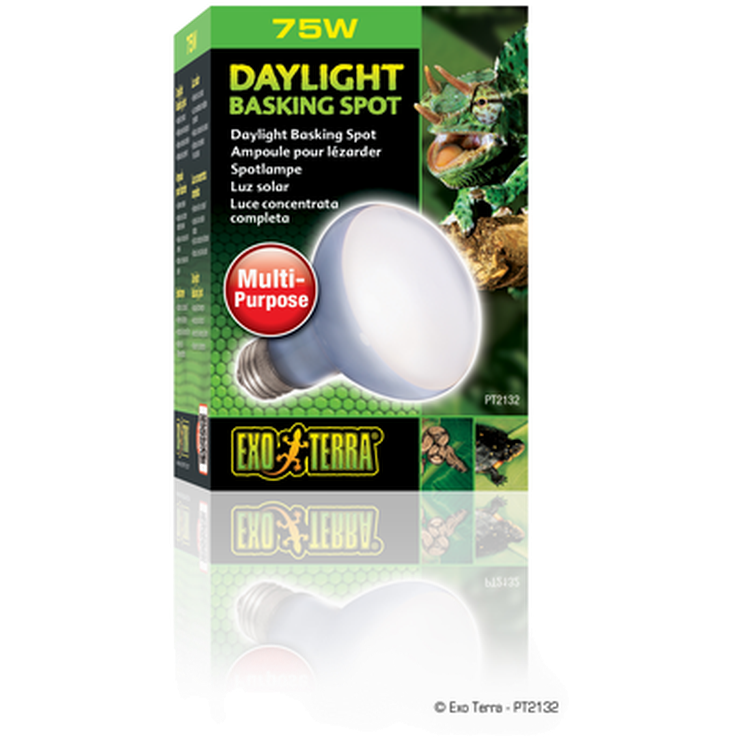 Exo Terra spotlight for terrarium. Reptillampe som gir et naturlig lys, øker lufttemperaturen i terrariet og har mulighet for å rette lys-/varmestrålene slik at dyret får en solrik plass i terrariet. Kan kombineres med Exoterra Repti Glo eller Day Glo.