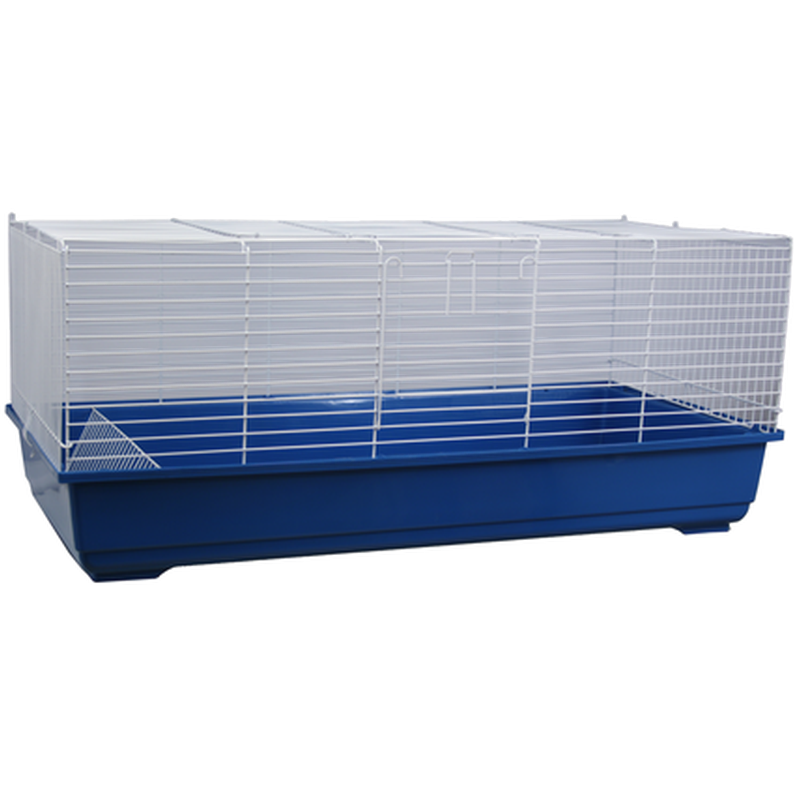 Stort, romslig innendørs marsvin- og kaninbur med plastbunn for enkel rengjøring, tilgjengelig i blå og burgunder farge. Smådyrsbur utstyrt med en gittertopp med to ulike åpninger slik at du får tilgang til buret. Innendørsbur for både marsvin og kaniner med plass til burinnredning.