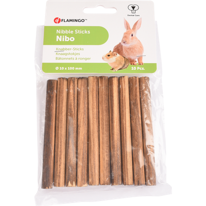 Gnagerklosser i tre for kaniner og gnagere for å slipe ned tennene. Små dyrs tenner vokser hele tiden og må slipes ned for å hindre at de blir for lange. Gi kanin, rotte, mus, hamster og ørkenrotte tyggevennlige treklosser. Flamingo Gnaveblokk Nibo. Funksjonell burinnredning til bur for smådyr. Berik hverdagen til kaninen, marsvinet eller hamsteren din med stimulerende og aktiverende smådyrtilbehør.